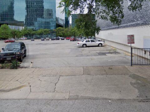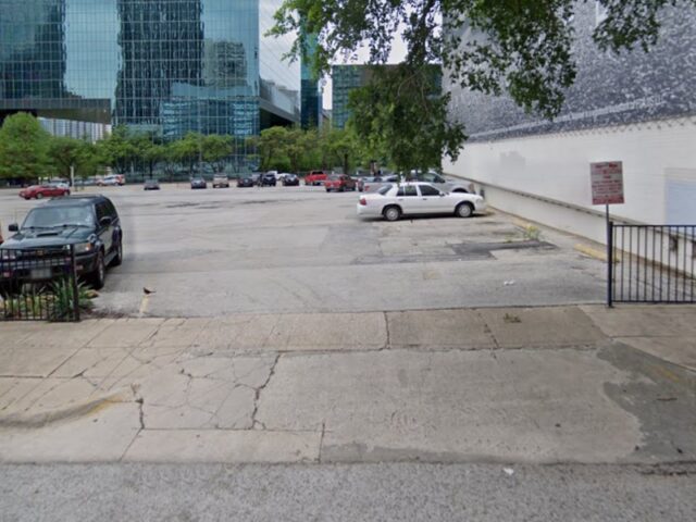 This open-air lot is located on the left side of San Jacinto St, just after the intersection with N Field St. Look for a paved corner lot secured by a black fence.