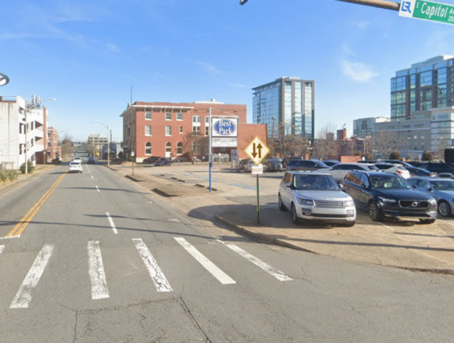 This surface lot is located on the east side of Scott St, on the northeast corner of E Capitol Ave and Scott St. Look for a white and blue sign that reads "Best Park" in white.